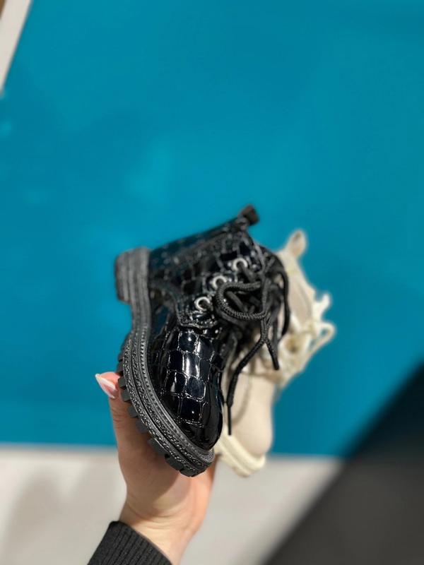 Новинка Осень 💫 🔹Красивые лакированные ботиночки! 🔹Легкие и качественные. Внутреннее подкладка текстиль 🔹Сбоку замок и шнуровка Гибкая подошва Стелька в см: молочные: Р.21-13,5 см Р.22-14 см Р.23-14,5 см Р.24-15 см Р.26-15,4 см Р.27-16,2 см Р.28-16,8 см Р.29-17,6 см Р.30-18,2 см черные: Р.23-14,5 см-3 п Р.24-15 см Р.25-15,3 см Р.26-15,4 см Р.27-16,2 см Р.28-16,8 см Р.29-17,6 см арт86