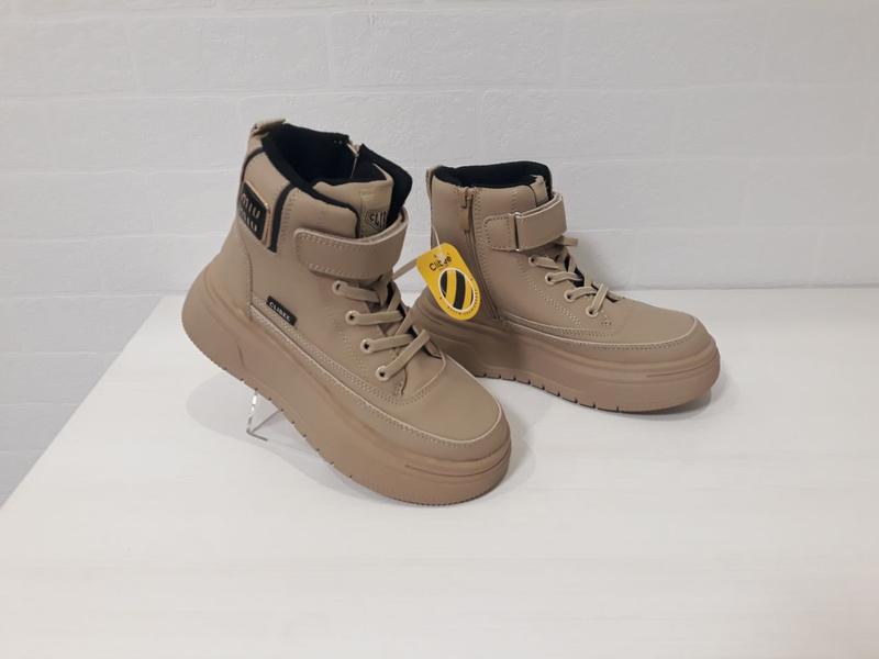 Демісезонні черевики для дівчаток Clibee. Якісні, стильні, застібка: блискавка, липучка, шнурки-гумки. Верх - екошкіра. Утеплені флісом. Заміри по устілці: 34 розмір - 22,0 см 35 розмір - 22,5 см 36 розмір - 23,3 см 37 розмір - 23,8 см 38 розмір - 24,6 см