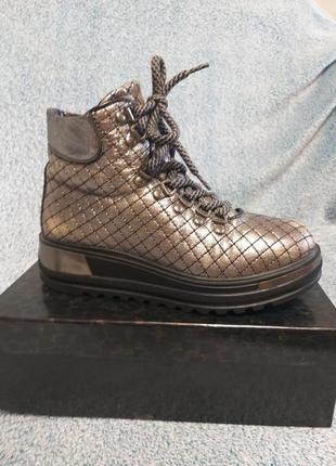 Ботинки демисезонные, кожаные. Утепленные. На шнуровках. Размер 38. Длина стельки 24 см. Имеется потертость на носике, белая пятка. Можно заменить стельки.