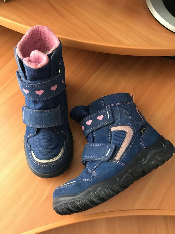 Ботинки Superfit 29 р. gore-tex Устілка 18,5 см. Рекомендовано на ножку 17,5-18 см. Темно-синие. Защелкиваются на липучки, держат крепко. Мембрана gore Tex обеспечит тепло и сухость ног в любую погоду. Удобная и надежная обувь на зиму. Состояние отличное! Без дефектов! Перешлю