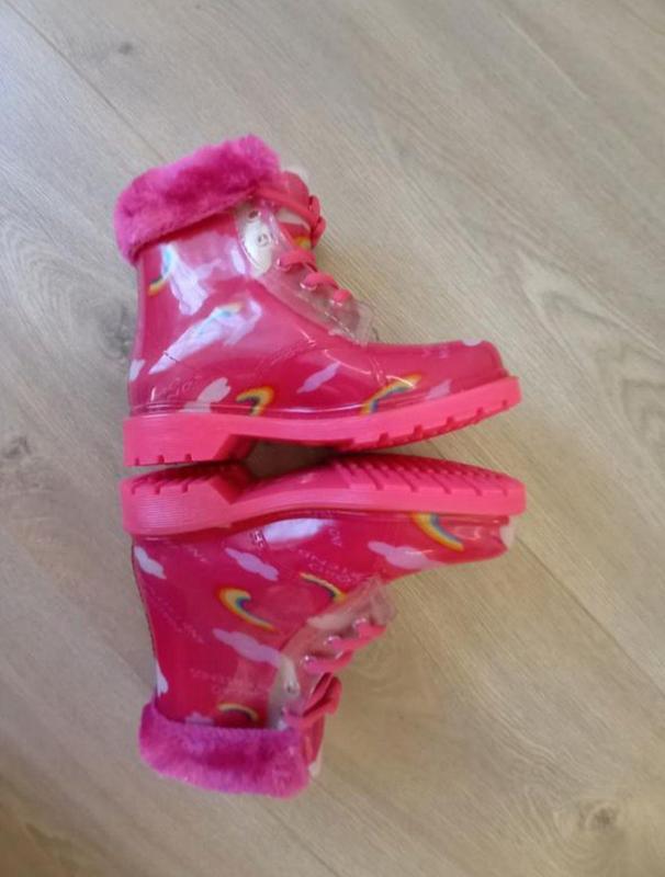 Силиконовые детские ботинки для девочки размер 20.5 см 21 см Детские розовые силиконовые сапоги ботинки - стильные, непромокаемые ,утеплённые и очень красивые демисезонные ботинки для девочки . Изготовлены из современного непромокаемого , легкого и имеющего красивый внешний вид силикона. Внутри чулочек из искусственного меха, который без труда можно вынуть и постирать. Мягкая ,гнущаяся подошва с каблучком позволяет правильно формировать походку ребёнка. Застёжка- шнуровка позволяет регулировать подъём. и ширину. Размеры 33, 34 ( ориентируйтесь, пожалуйста на замеры) Замеры сделаны по наружному шву мехового носочка) - размер 33 - 20,5 см - размер 34 - 21,0 см !!️Уточняйте ,пожалуйста, наличие размеров. Наш менеджер предоставит Вам качественную консультацию по подбору размера. Высылаем Укрпочтой, Новой почтой, Мист, Розетка - Заказы, оформленные до 15-00 год отправляются в день оформления заказа. - Заказы, оформленные после 15-00 отправляются на следующий рабочий день. - В воскресенье отправлений нет. Все вопросы можно задать, позвонив по номеру телефона 38 *************. Есть вайбер, телеграмм