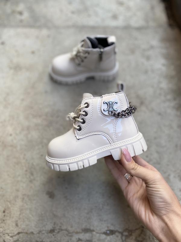 Демісезонні черевики для дівчаток👧 Верх - лакована еко-шкіра. Утеплені легким лісом. Підошва - пвх. Є боковий замочок. Заміри по устілці: ❌23 - 14см ✅24 - 14,5см ❌25 - 15см ✅26-15,5см ❌27 - 16см Рекомендований запас до 1см ☝🏽Заміри зроблені вручну, можлива похибка 1-3мм • безпечна оплата | накладний з передоплатою 150 грн | повна оплата; • обмін | повернення; • відправка 1-2 дні;