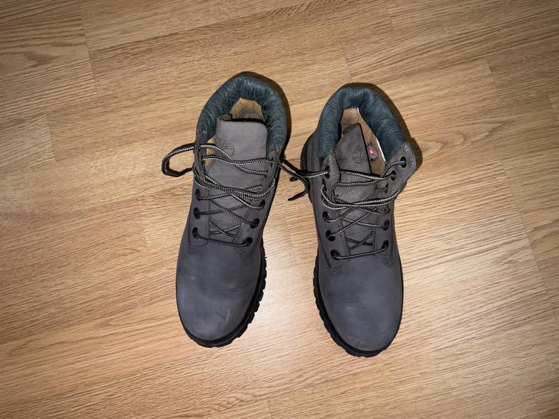 Качественные детские ботинки Timberland Сделаны из натурального нубука, серого цвета Размер указан 37 Рекомендовано на стопу 22,5 см Фактическая длина стельки 23,5 см Подойдут на осень и теплую зиму Водонепроницаемые, waterproof Стан - идеальный