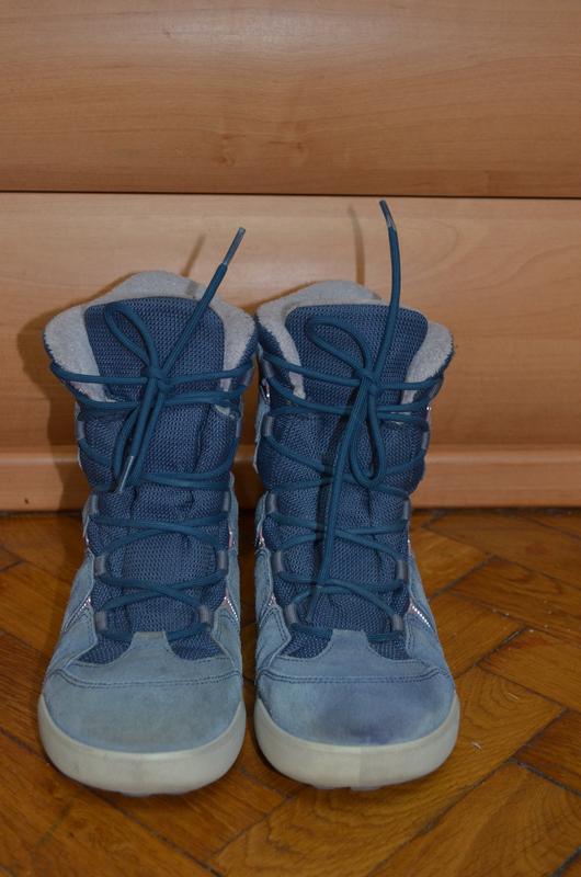 Зимние ботинки Lowa Lilly II GTX Mid на шнуровках. Водонепроницаемые, теплые. Материал верха: замша, текстиль. Подкладка: GTX Partelana. Цвет: голубой. Размер: 36 (амер.4,5), на стопу 22,7 см. Стан на 4- з 5.