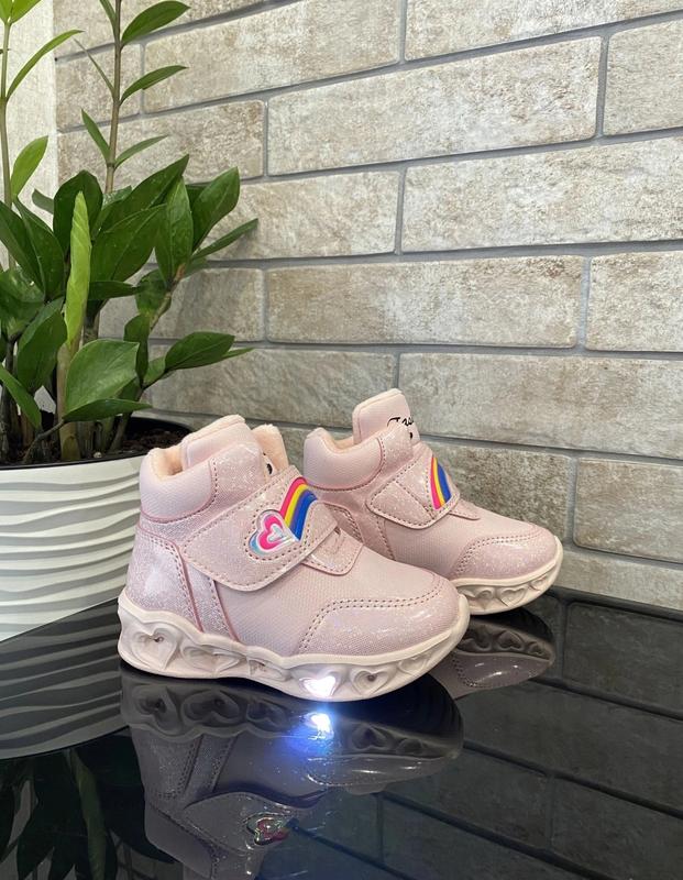 Самая минущая новинка этого сезона для ваших крошек✨ Невероятное качество✨ Снаружи эко-кожа Гибкие, легкие и удобные Утеплені м’якеньким плюшем Выглядят на ножках очень круто Застежка на широкую липучку Подошва светится при ходьбе пан 23 размер 14,8 см 24 размер 15,3 см
