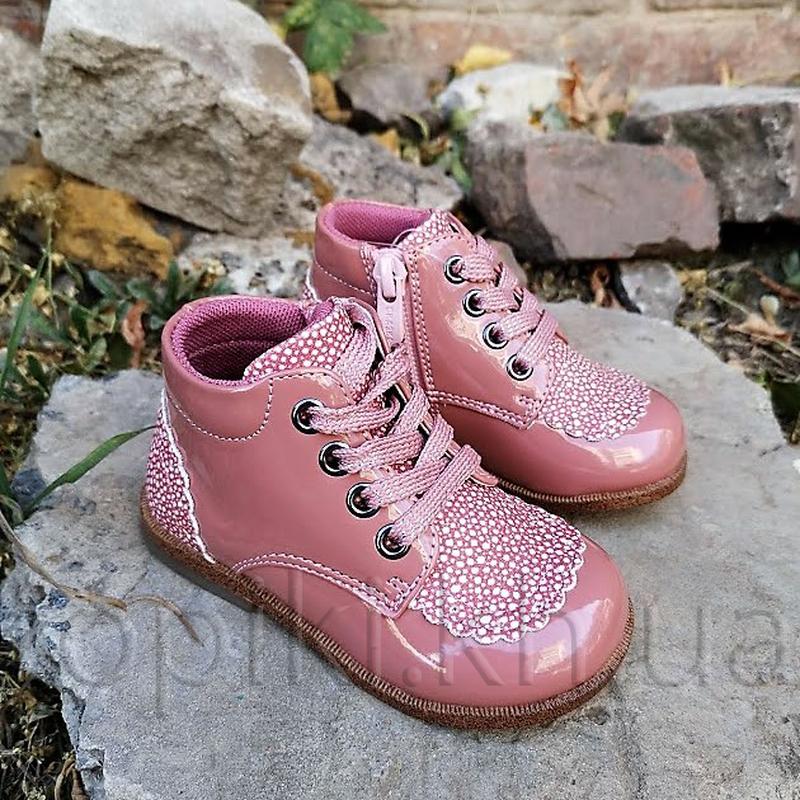 Яркие и стильные ботинки для девочки ТМ Сказка. Верх - экокожа. Утепленные текстилем. Внутри кожаная стелька с супинатором. На молнии. Размер 23 - 15 см