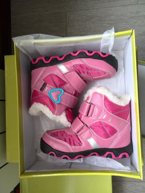 Сапоги -ботинки Plato 22 р -27 р новые.Зима.Бельгия. Ярко-розового цвета с розовой отделкой,и с принтом сердечка и Сапожки застегиваются на 2 липучки.Система TEX позволяет ножкам оставаться всегда теплыми и сухими.Основным свойством материала является водонепроницаемость и паровыводимость .Сапожки очень легкие,внутри -искусственный мех и меховая стелька.меховой опушкой белоснежного цвета.Подошва-черная с розовой отделкой .Легкие,как кроссовки.Верх-искусственна кожа(еко-кожа) и текстиль.Подошва-резина. 22 р(14.5 см) 23 р(15 см) 24 р(15,5 см) 25 р (16,5 см) 26 р-(17,5 см) 27 р-(18 см) Цена 650 грн., Смотрите и другие объявления с детской обувкой у меня на страничке