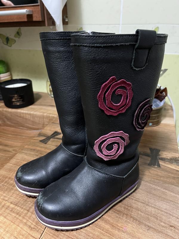 Хорошие сапожки, которые не пропускают воду. Теплые и удобные, подойдут на узкую ножку. Внутри искусственный мех. Спереди носочки потертые, но крем для обуви это легко исправит (специально не делает этого для фото, чтобы не вводить Вас в заблуждение). Молнии работают.
