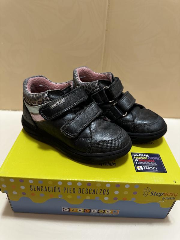 Ботинки, размера 25, Испанской фирмы PABLOSKY, по объявлениям можно понять что это наши любимые и самые удобные ботинки, ребенок имел большой подъем, за счет двух липучек очень классно регулируются на ножке, липучки прочные, натуральная кожа, внутри легкий флисик, ножка не потела вообще.