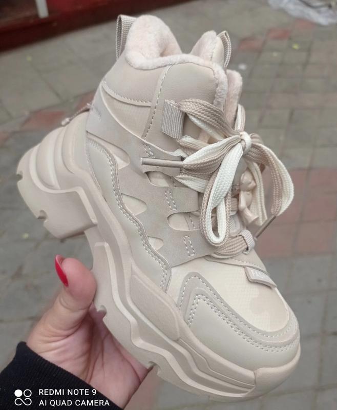 Трендовая модель зимних кроссовок Снаружи эко кожа с сочетанием искусственного меха Внутри набивная овчина Боковая застежка Массивная подошва на вид, но модель легкая МОЛОЧНЫЕ ЦИНА 1278 грн 32 размер 20,5 см 33 размер 21 см 34 размер 21,4 см (2 шт 35 размер 22 см (2 шт 36 размер 23 см 37 размер 23,5 см При оформлении заказа через кнопку Купить полная оплата, обязательно уточайте наличие размера Есть накладной по подписке 150 грн