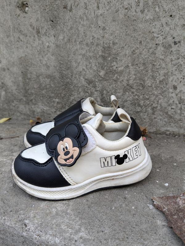 Кроссовки с Микки маусом,все в хорошем состоянии, но на фото есть недостаток,-позади на подошве(см.Общая фото). Размер 23. По сантиметрам : 13,5 см.