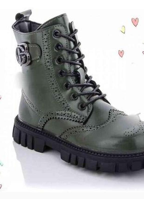 ТМ Леопард (ТМ Леопард) Размер 36 и маломерит. Стелька 21,5 см. Стильные ботинки демисезонные, утепленные на коротком мехе, можно даже на небольшой мороз. качественный козырь, есть шнурок и молния, подойдут и на подъем, язычок полностью расшнуется, фиксируете на нужную полноту и можно постоянно не завязывать, а пользоваться только молнией. стильный дизайн, средняя высота, чуть выше косточки. подошва тракторная, не низкая, взбить носок нелегко) модный цвет хаки. Обмену и возврат нет, задавайте вопросы всем ответьте. Оплата на картку Приватбанку. Доставка УП,НП оплата при получении