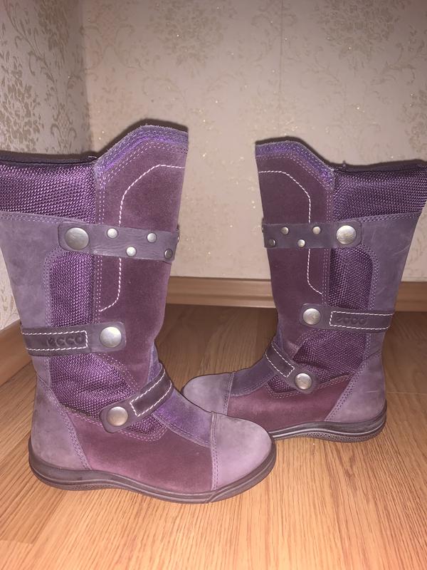 Очень удобные сапожки для девочки, состояние красивое, 27 размер, стелька 17,5 см. Фирма рекламы не требует, носили один сезон.
