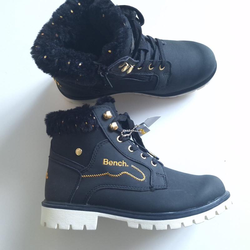 Теплые ботиночки для девочки от Bench - Стильные, теплые и удобные. - Спереди на шнуровке, сбоку молния для удобства обувания. - Ботиночки внутри, теплые, имеют мягкий мех. - Верх оздоблений м"яким хутром. В наличии размер: EUR 36 (Uk 3) - полная длина стельки 23.7 см