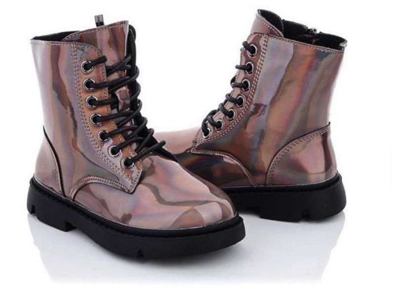 Очень стильные деми сапожки от фирмы Apawwa Они невероятные Качество,дизайн,сочетание цветов Верх еко лак Внутри мягенький флис Стелька флисовая Боковая молния,шнуровка 26 размер 15,5