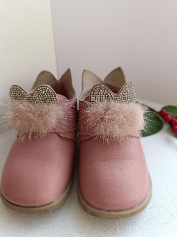 Нежные ботиночки на девочку Прекрасно садятся на ножку любого подъема, регулируются застежкой-липучкой. Сезон осень-весна. Утепленные плюшем. Размер 21, длина стельки 14 см.