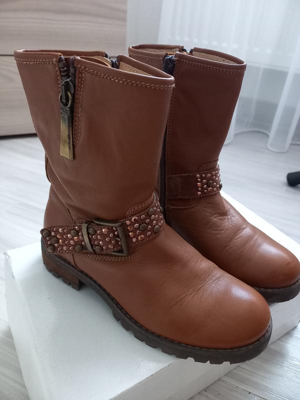 Сапожки в очень идеальном состоянии, стройте новые.Размер 31 (осень).Полностью кожаные (середина тоже).Очень стильные,легкие.