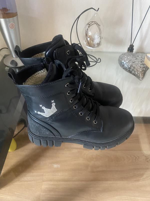 Продам чоботи зимові, носила донька минулої зими. Стан дуже-дуже добрий, без нюансів, тільки треба шнурки замінити. Всередині хутро, зовні шкіра. За устілкою 23-23,5 см