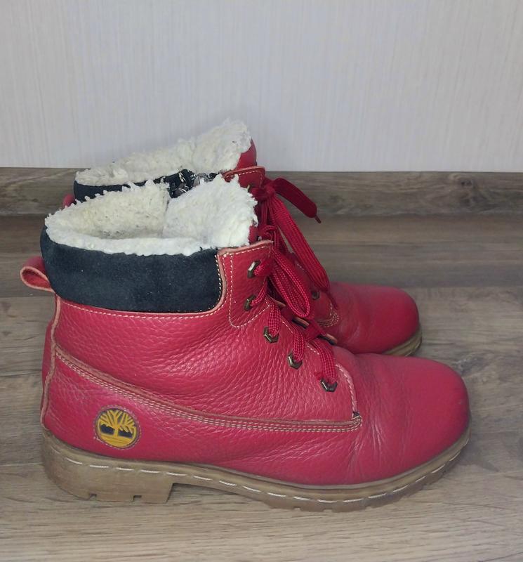 Зимние детские/подростковые ботинки красного цвета, выполненные из кожи. 36 размер Питательные Ботинки находятся в хорошем состоянии, удобны и теплые. Хотя на этикетке написано "Тимберленд", следует отметить, что это копия. Из существенных недостатков лишь небольшая проблема: на левом ботинке слегка сломан бегунок замка (4 фото), но это никак не влияет на функционирование самого замка. Отправка осуществляется Укр-почтой или Новой Поштой, является безопасной оплата