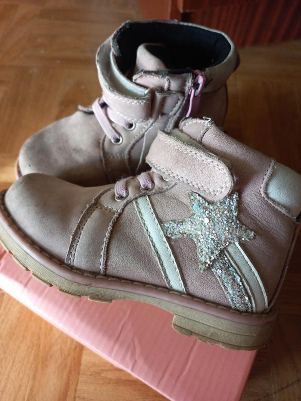 Ботинки осенние для девочки от бренда BI&KI. 25 размер. Стелька где-то 16 см, не вынимается. Стан на фото. Красивые, но видно, что носилки.