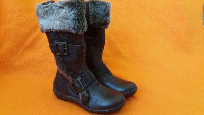 Верх - натуральная кожа. Внутри на флисе. Подошва рельефная, не скользит (PU). Полнота M IV Цвет - коричневый. Состояние идеальное Стелька от края до края 17,5см Высота-22см