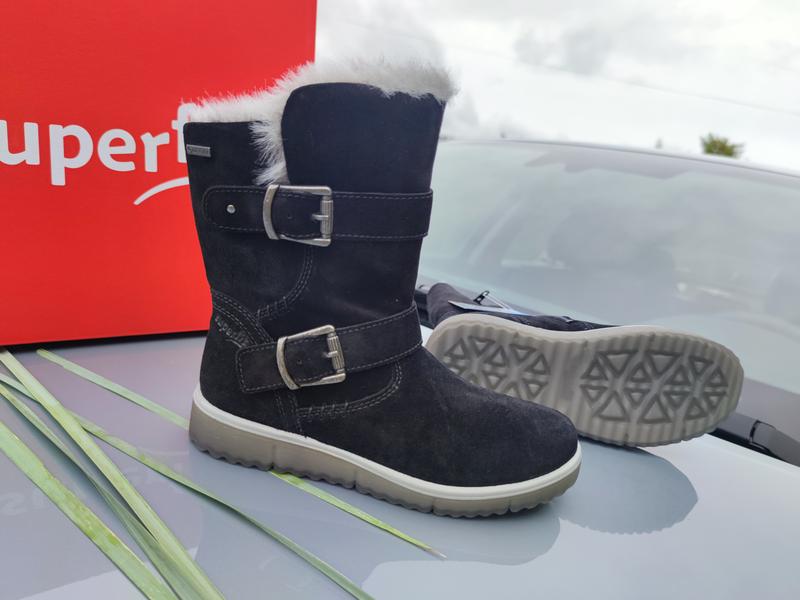НОВЫЕ Зимние замшевые ботинки Superfit Lora Оригинал из Англии разм.32. стелька 21см - 2250грн разм.36. стелька 24см - 2370грн Superfit – это марка номер один компании Legero. Основанная в 1875 году, в настоящее время фабрика Legero является одной из лидирующих обувных фирм в Европе. Ее можно сравнивать с такими ведущими брендами как Ecco, Geox, Richter - Цвет: черный - пол: девочка - Полнота М - верх: натуральная замша, укрепленная водонепроницаемой мембраной Gore-tex - внутри - искусственный мех с шестью (белый баранчик) + серый искусственный мех - используется мембрана GORE-TEX, которая позволяет обуви быть непромокаемой и обеспечивает хороший воздухообмен, чтобы ножка не потела. нога сухая и тепла всегда, как кончики пальцев, так и вся поверхность. Ботинок внутри сухой и теплый, нет ощущения потливости. - застежка: внутренняя молния - съемная, утепленная мехом, стелька - в пяточной части - стабилизатор, чтобы ножка "не гуляла" и не было возможности ее травмирования