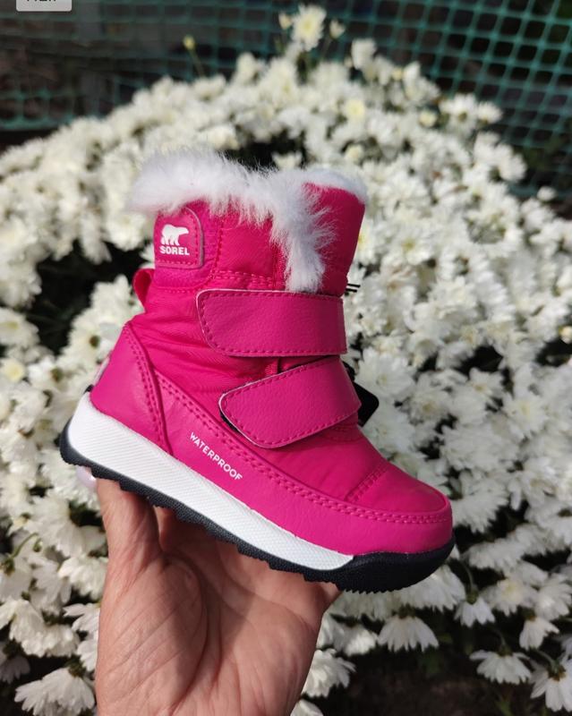Новые зимние ботинки Sorel Whitney Оригинал разм.22. длина стельки 13.5см - 1699грн разм.23. длина стельки 14.3см - 1799грн Канадская обувь Sorel – это теплая, непромокаемая и практичная обувь отличного качества. Логотип в виде белого медведя только подчеркивает тепло, уют и силу этого бренда Ботинки Sorel очень красивого розового цвета. Верх выполнен из водонепроницаемого нейлона с подкладкой из микрофлиса и утеплителем (200 г). Сапожки внутри полностью с одинаковой теплой подкладкой, что позволит вынуть стельку (увеличив размер или полноту) и не потерять на свойствах теплоизоляции. Съемная утепленная формованная стелька с подъемом под пяткой. Резиновая подошва для дополнительного сцепления на скользких поверхностях - температурный режим: light urban snow ( городская, не очень холодная зима)