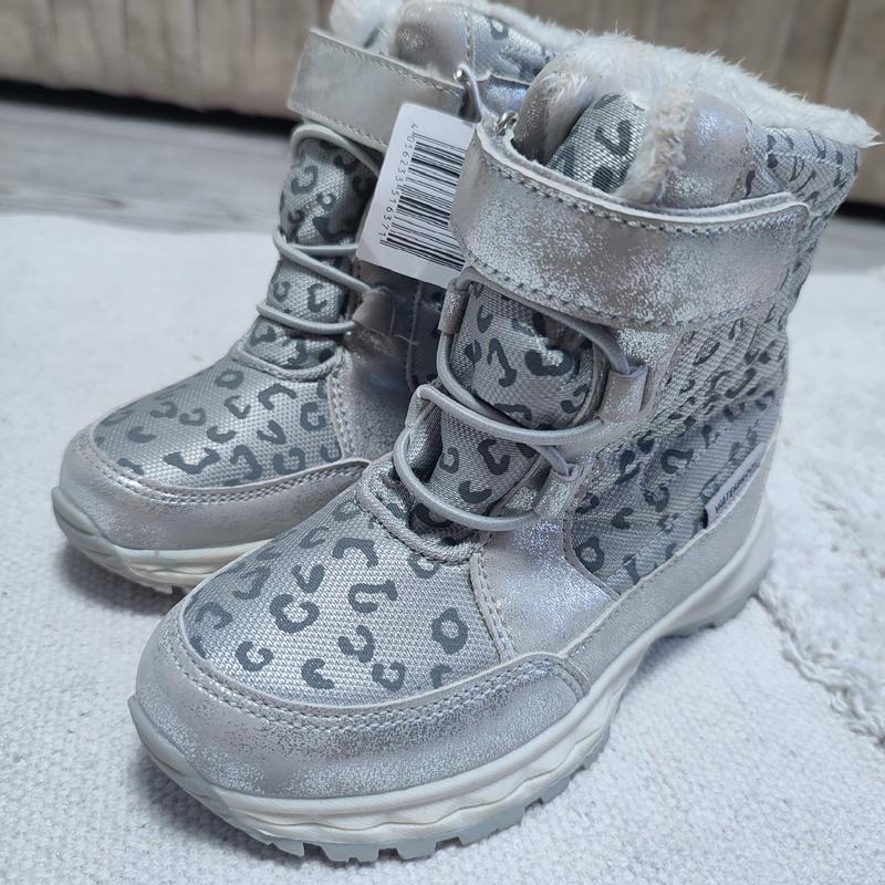 Термочеревики Lupilu. Заміри устілки: р. 27 – 17,5 см Легкі, теплі, з фольгованою устілкою для кращого збереження тепла. Верх – комбіновані водо- та вітронепроникні матеріали, всередині м'який плюшевий утеплювач, додатковий внутрішній шар термофліс. Підошва рифлена, не ковзає. Є світловідбиваючі елементи.