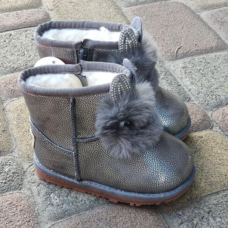 Зимние угги с ушками Леопард Внутри- шерсть Сбоку на молнии Стелька 15 см