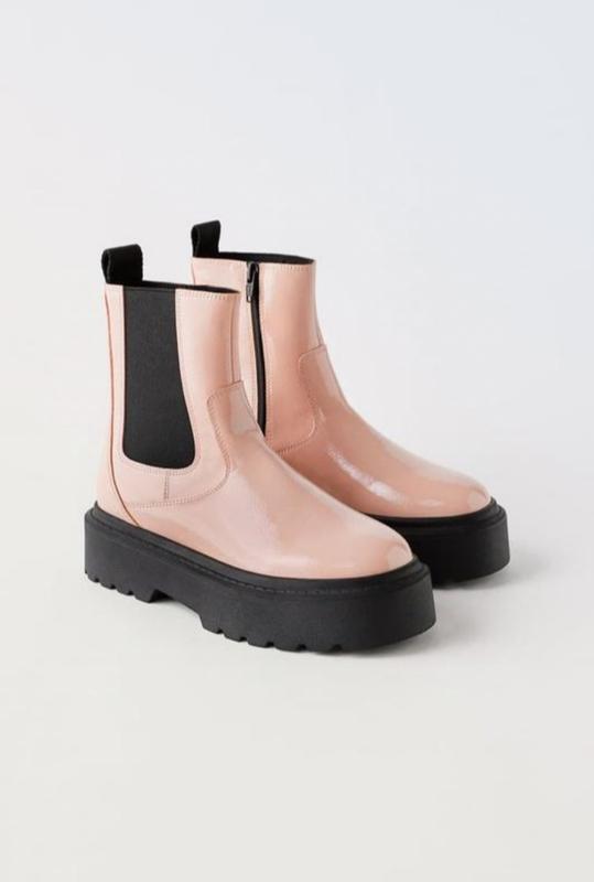 Лакированные ботинки-челси с молнией сбоку, петелькой для облегчения обувания сзади, гибкой стелькой и резиновой тракторной подошвой контрастного цвета. Подходят для подростков, с худи ножкой также