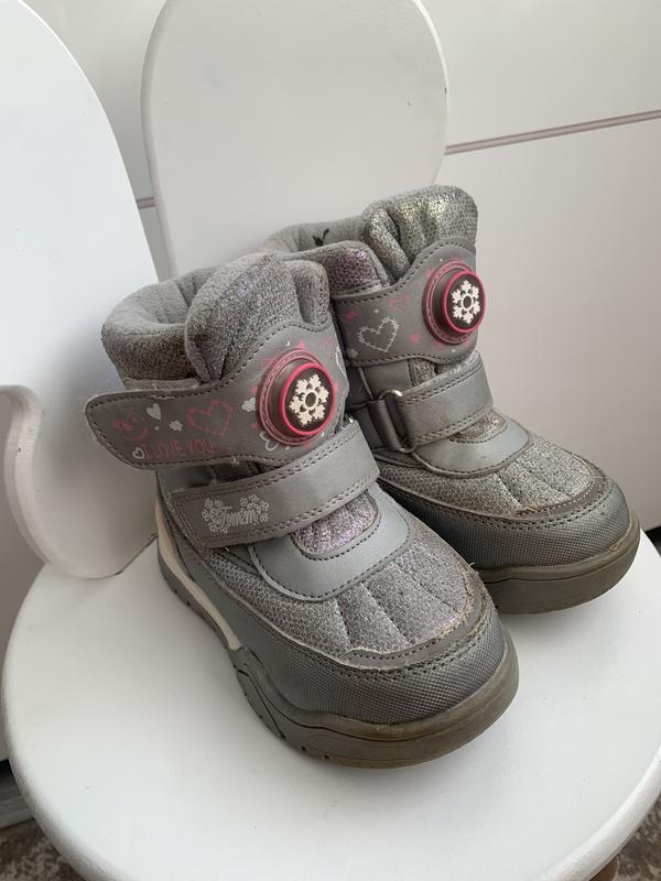 Непромокаемые термо ботинки. В хорошем состоянии. Снежинки светятся при нажиме. Размер 25
