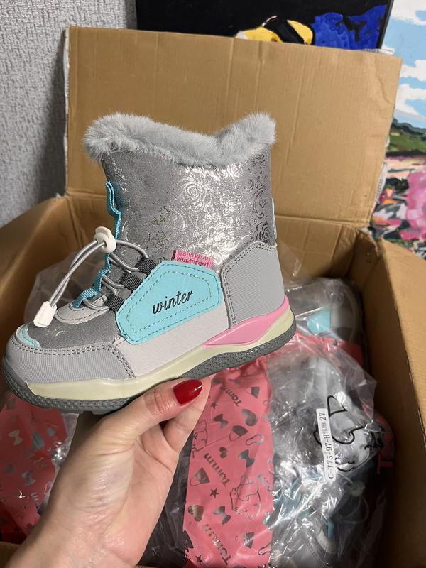Детские зимние дутики "Том.m" на девочку Очень теплые и удобные. Отличное качество. Размеры: 23,24,26,27,28 Замеры выполнены по стельке: 23-14.5см 24-15см 26 р- 16.5см 27-17.5см 28-18см Можлива похибка +/- 1-2 мм. Материал верха обуви-Кожа. заменитель, Композит. материал. Внутренний материал обуви-Натуральный мех Овчина. Тип застежки- Молния