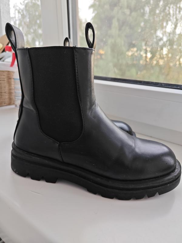 Качественные,гарни Челси на тракторной подошве из качественного плотного кожзаменителя, выглядят как натуральная кожа,не весы на ноге но такие "что возьмешь веснушки" состояние на 4ку но в цене учтение. стелька 22см