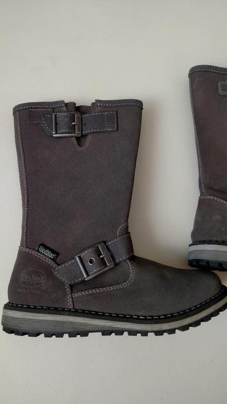 Верх з натуральної шкіри, серединка утеплена тонким штучним хутром. Устілки теплі, не виймаються і мають довжину 20 см.
