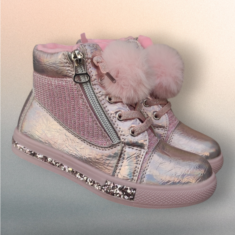 Розовые детские деми ботинки, кеды хайтопы утеплённые осенние для девочки