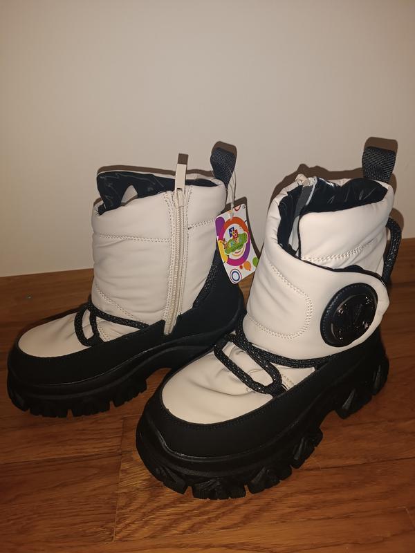 Новинка стильных легких сноучтсов от Jong.Golf. плотный мех, застежка молния и липучка, красиво фиксируют ножку, удобные и теплые. Сверху плащевка. Шнурок также регулируется. 34-22,2 см 35-22,8 см