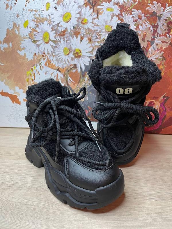 🐏Стильні зимові кросівки для модних дівчаток 🐏Верх еко шкіра в поєднанні з взуттєвим, штивним текстилем «баранець» 🐏Всередині утеплені 60% натур.овчиною, 🐏Устілка теж утеплена 🐏Шнурками можна легко відрегулювати обʼєм ніжки 🐏Збоку на змійці