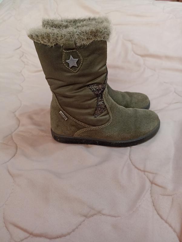 Красивые сапожечки, замшевая ткань немного затиралась, то мы когда одевали продавались специальной щеткой и тогда выглядят красиво, размер указан 29, стельки 19 см.