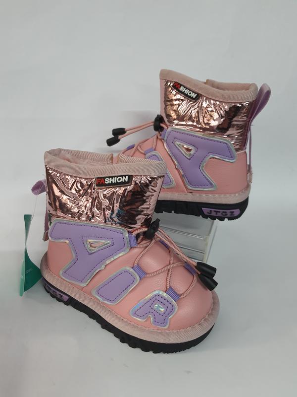 Верх - искусственная кожа, утеплены густым искусственным мехом, сбоку молния 21р - 13,5см 22р - 14см - 2 23 р - 14,5см - 2 24р - 15см - 2 25р - 15,5см