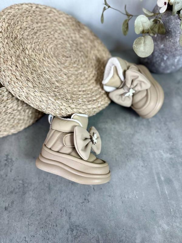 Утепленные густой овчиной ▫️Бантик надежно пришит ▫️Внешне эко кожа очень хорошего качества ▫️Фиксируются на ножке широкой липучкой ▫️Очень легкие и удобные ▫️Высота платформы 2,5 см. ▫️Замеры сделаны изнутри, возможна погрешность +/- 1 мм. Размеры в наличии: 24р.- 15,2 см 2 пары 27р.- 17,5 см 28р.- 18,0 см 30р.- 19,2 см 2 пары 31р.- 19,7 см 32р.- 20,2 см