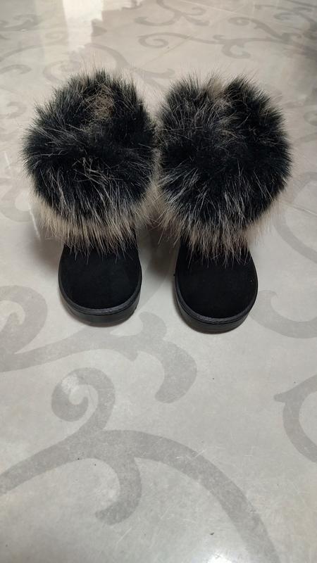 Теплые угги на девочку (искусственный мех), но очень хорошего качества, теплые, внутри мех, в размерах 25 размер - стелька 16 см; 27 размер (2 пары) - 17,5 см; 28 размер - 18,5 см Цена в магазине 700 грн, розродаж