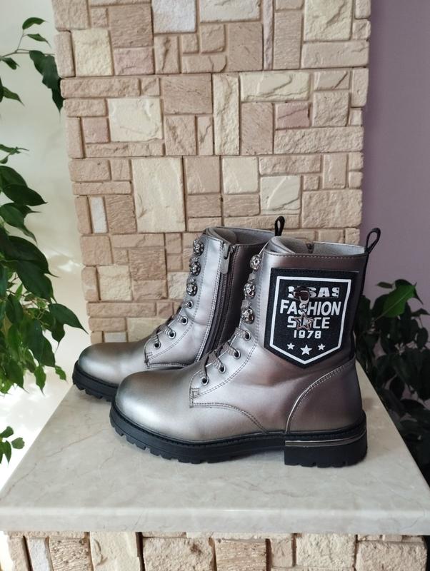 Зимние ботинки детские Weestep для девочки. Носились несколько раз, выросла ножка (по фото видно, что фактически новые). Отдаю по опт цене, чтобы продать быстрее (фирма хороша, соответственно цены выше средних). - интересный цвет бронза; - изготовлены из высококачественной экокожи; - утепленные кожушком овчиной внутри; - два вида застежек – шнурки и замок. 🏷️ размер 35 (по стельке 22,8-23 см).