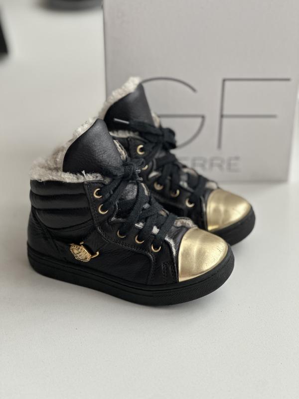Продам дитячі зимові черевики GF FERRE. Оригінал! Розмір 25. Устілка 15 см. Підошва 17 см. Натуральна шкіра. Овчина. Дуже теплі. Вживані. Стан добрий. Є оригінальна коробка. Колір чорний. Є дефекти( потертості на носках). Придбані в брендовому магазині.