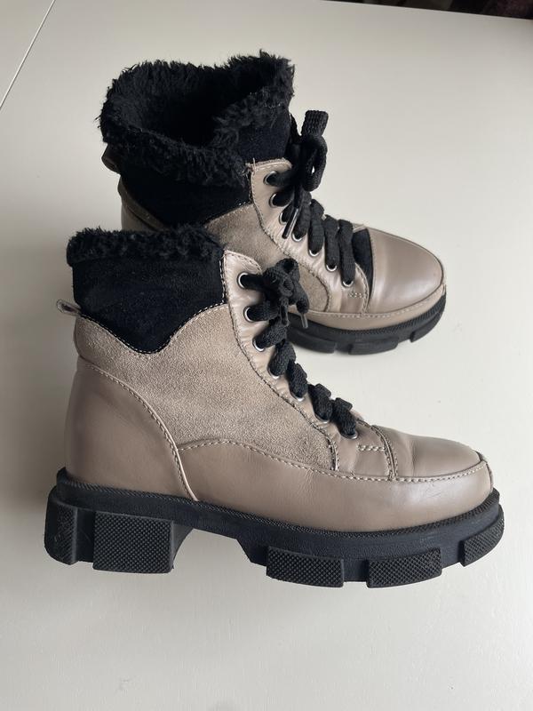 Ботинки на утолщенной подошве. 32 размер, 20см. стелька. Выполнены из натуральной кожи цвета визон. Очень удобные и практичные - ножцы будут комфортно. Подошва литая, прочная, легкая. Стильная модель - идеально сидит на ножке! Рассчитаны на стандартную полноту ноги. Высота с учетом подошвы -16см Высота подошвы ― 4,5см, спереди — 2см Обхват верху ― 26-29 см + шнурівка Утеплитель: мех Выполнены из натуральной кожи. В хорошем состоянии!