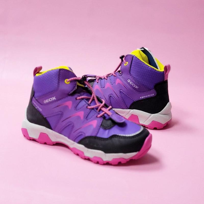 Демисезонные ботинки для девочки Geox MAGNETAR G.B ABX B Цвет: Purple/Fuchsia 🏷Размер: 31- 20,2см стелька Материал верха: кожзаменитель / текстиль Подкладка: 100% полиэстер Стелька: текстиль 👍Особенности: ✅️Накладки на мыске и пятку защищают от толчков и ударов ✅️Съемная стелька из текстиля ✅️Оптимальная терморегуляция в любых погодных условиях благодаря технологии amphibiox, которая обеспечивает воздухопроницаемость ✅️Дышащая подошва из резины обеспечивает сцепление