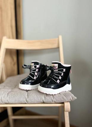 Виготовленої з якісних матеріалів. Екошкіра комбінована з плащівкою.Не пропускають вологи та холоду.Легенькі.Утеплені хутром(70%складає овчинка,30%- штучне хутро).Фіксуються боковим замком та шнурівками .Дуже зручні. Розміри : 22-14,1 23-15 см 24-15,5 см 25-16,2 см 26-16,9 см 27-17,4 см
