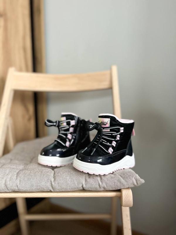 Изготовлен из качественных материалов. Экокожа комбинированная с плащевкой. Не пропускают влаги и холода. Легкие. Утепленные мехом (70% составляет овчинка, 30% - искусственный мех). Фиксируются боковым замком и шнуровками. Размеры: 22-14,1 23-15 см 24-15,5 см 25-16,2 см 26-16,9 см 27-17,4 см