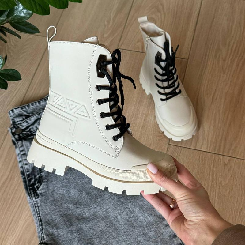 Зимові черевики із нової колекції ТОМ.М Хороший дизайн , дуже теплі і якісні Мають протезинений носок . Верх якісна еко шкіра Утеплення всередині овчина (60%) Застібка блискавка і шнурівка Беж світлий Повномірні ( запас зараз до ноги до + 1) 1200 грн 35 розмір 23 см