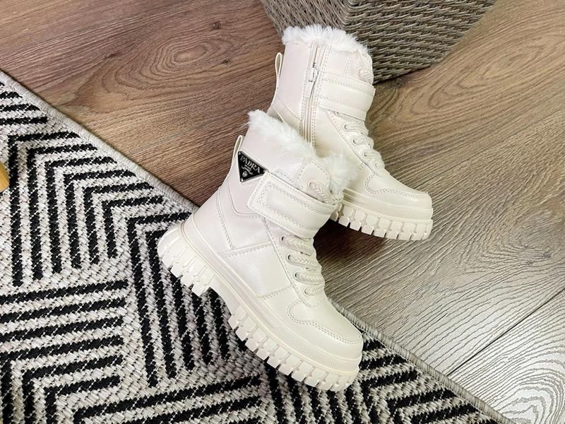 Зимові черевики ТМ Clibee Теплі і якісні Верх якісна еко шкіра всередині овчина (60%) Фіксація блискавка і шнурівка .широка липучка колір темний беж ЦІНА 1250 32 розмір 20 см - білі При оформленні замовлення через кнопку Купити повна оплата, обов'язково уточнюйте наявність розміру та кольору