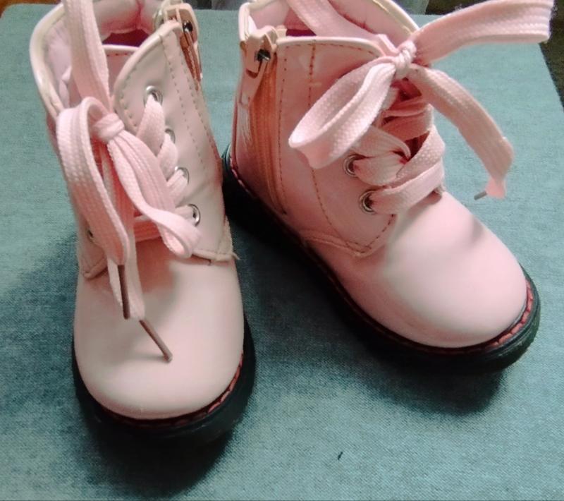 Черевики рожевого кольору Состояние очень красивое, на правом почти не заметны пару царапин Длина стельки 12.5-12.8 см